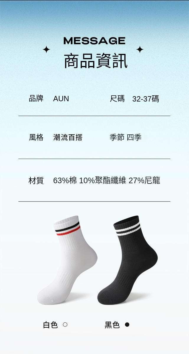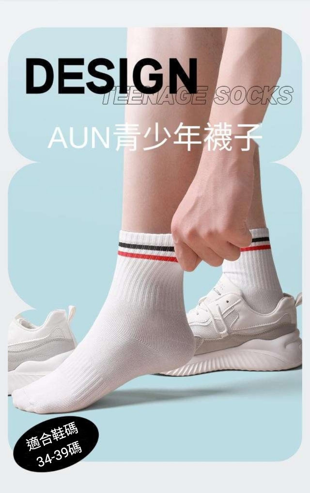 商品詳情 【青春無"味"】青少年除臭襪強勢來襲! 運動完再也不用躲着脫鞋啦! ▪品牌:AUN ▪顏色:黑色 / 白色 ▪尺寸:適合腳長 20∼22 CM ▪材質:63%精梳棉、10%聚酯纖維、27%彈性纖維 【4雙】AUN青少年時尚潮流中筒襪 QT001 TWD $635 TWD$ 540